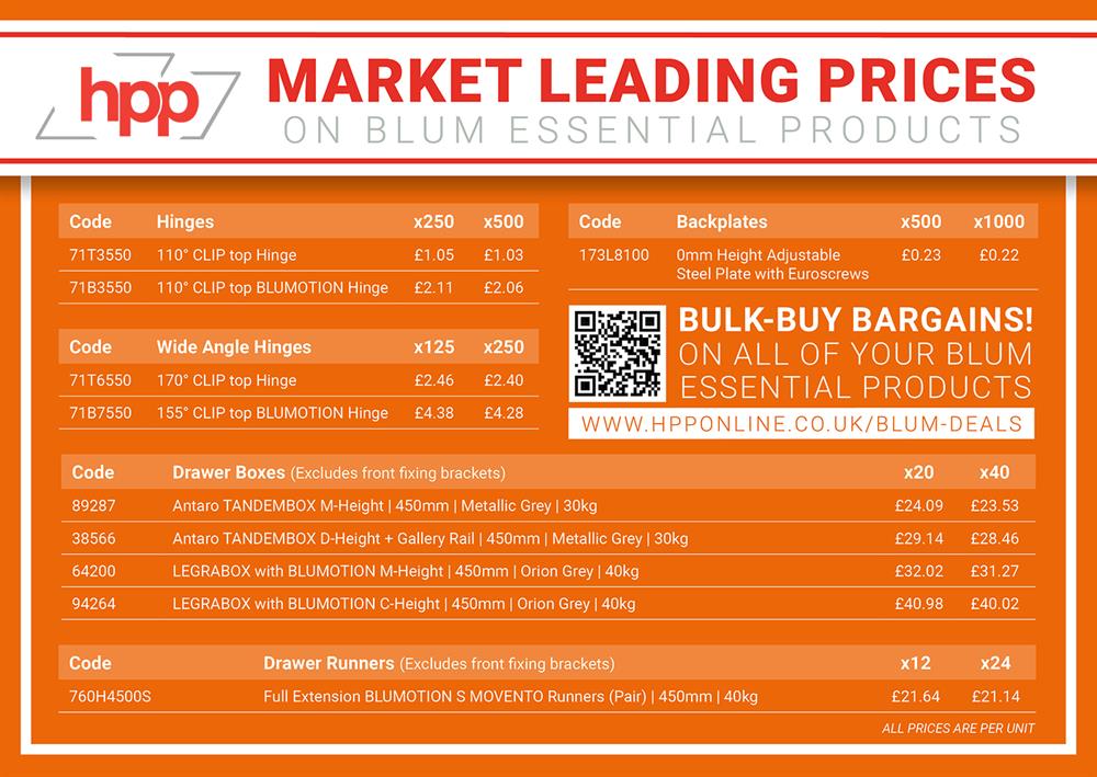 We're offering outstanding prices on box quantities of some key Blum lines: these products are the everyday 'go-to' for many kitchen fitters and furniture makers, so for KBB trade customers there are substantial savings to be made on these Bulk Buys.
