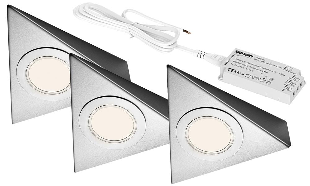 Sensio Bermuda HD LED Triangle Light Stainless Steel Warm White 3 Light Kit