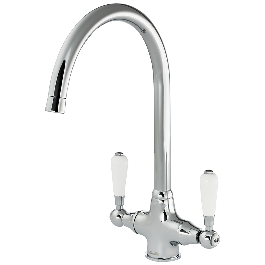 Reginox Elbe Tap Dual Lever Chrome / White Handles, includes fixing kit