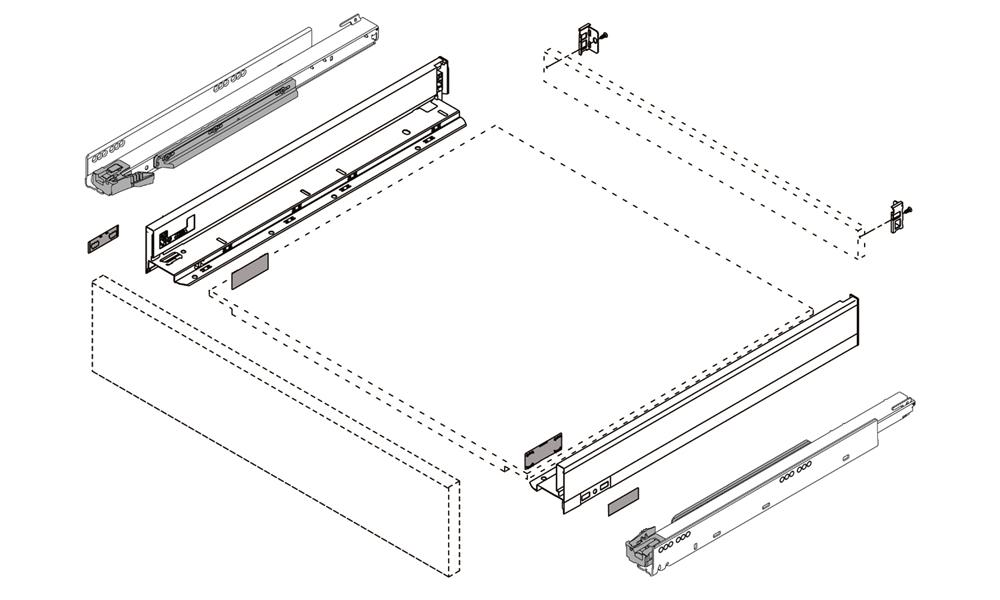 Two front fixing brackets are required per drawer.