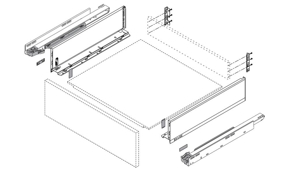 Two front fixing brackets are required per drawer.