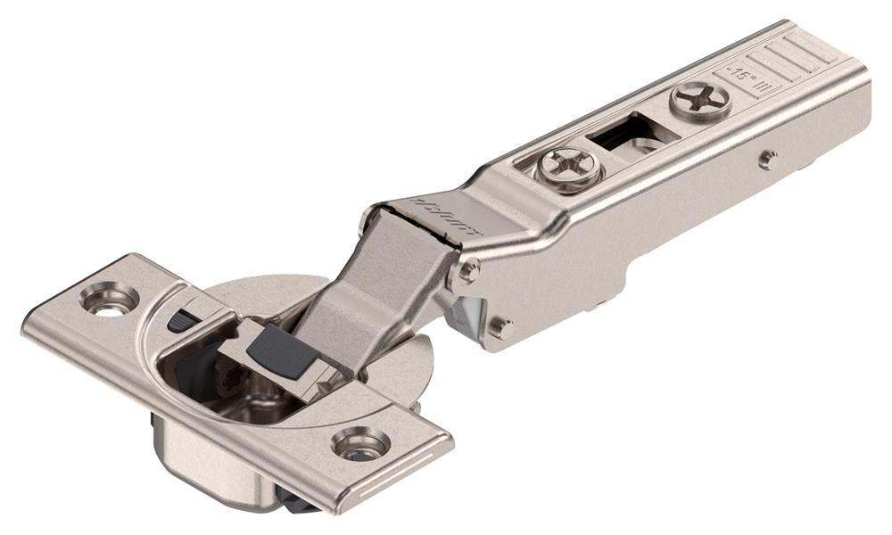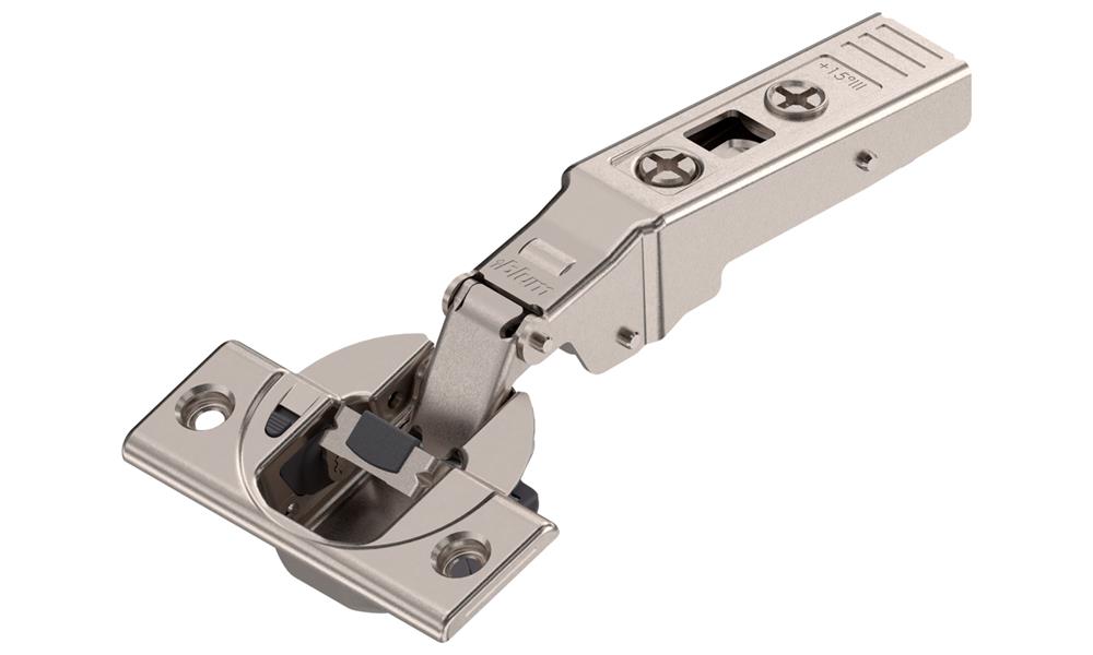 Clip Top is Blum's latest innovative hinge design, which has won them a FIRA innovation award. It offers resistance free spiral-tech depth adjustment. An additional locking pin means the hinge performs perfectly even when subjected to extraordinary loads, offering the user easy installation. The hinge boss cover cap discreetly combines highly sophisticated technology with a new attractive design.