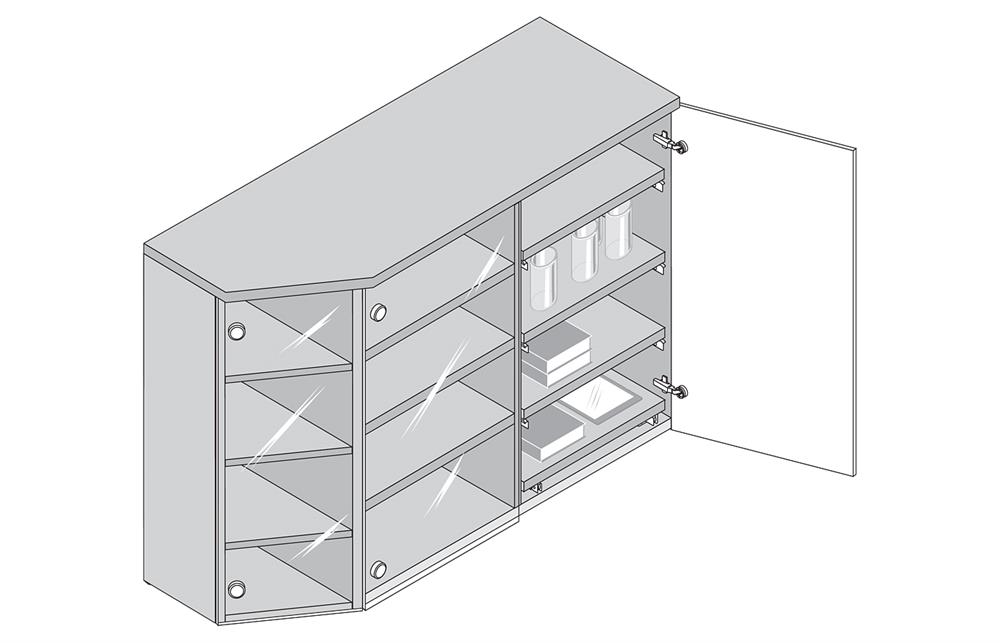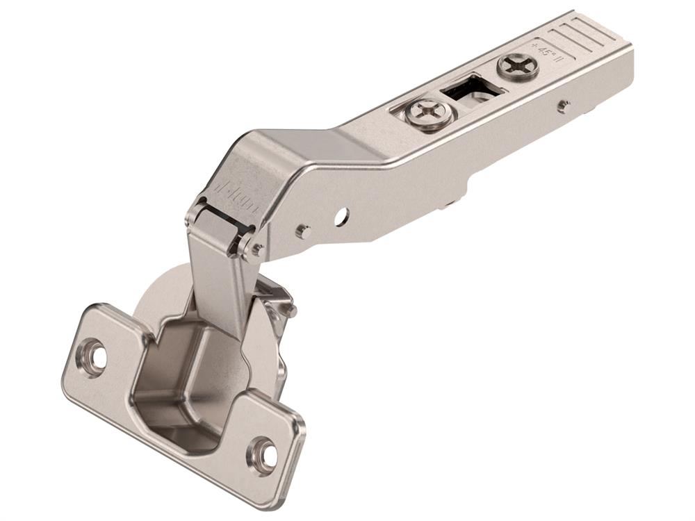 For corner cabinets with bi-fold doors. For use in combination with 170° hinge. This hinge requires special drilling which is not offered as part of our hinge hole drilling service.