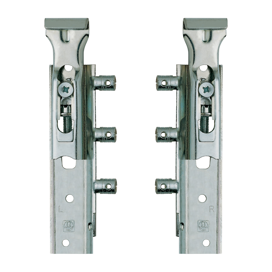 Ideal for drastically reduced fitting time. The cabinet hanger fits into four holes that need to be drilled. A simple 180-degree turn of the fixing lever locks the hanger into place. The hanger is both depth and height adjustable through an 18mm hole, which can be covered by a nickel cover cap.