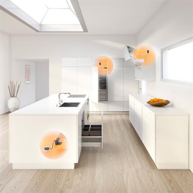 The Blum distance bumper creates and maintains the required trigger path of 2mm. Two are required per Servo-Drive drawer.