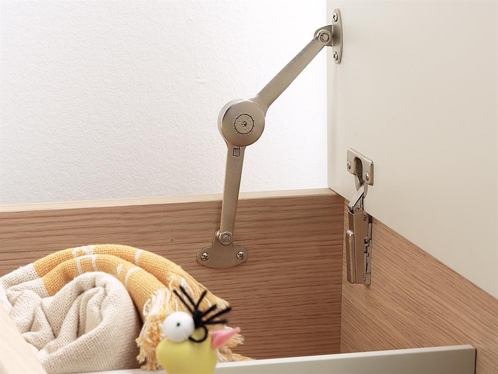 A unique hinge with many applications such as lids, drop down and lift up doors.