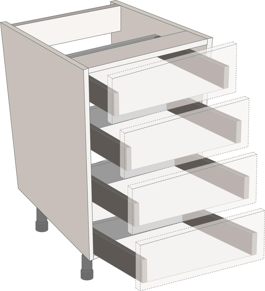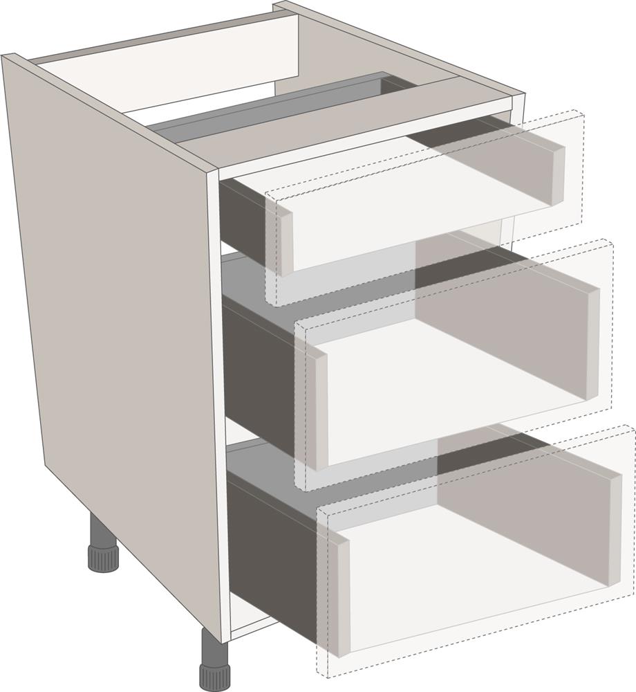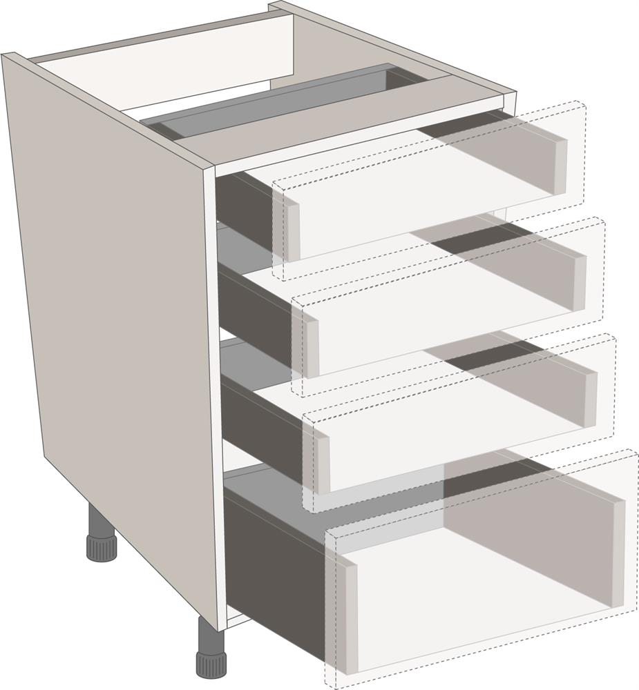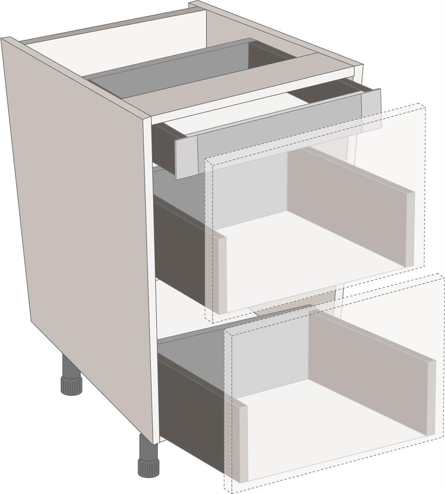 Standard Legrabox drawer packs are the perfect solution where drawer fronts are going to be used. All the components required for the drawers in a cabinet can be ordered using a single code.