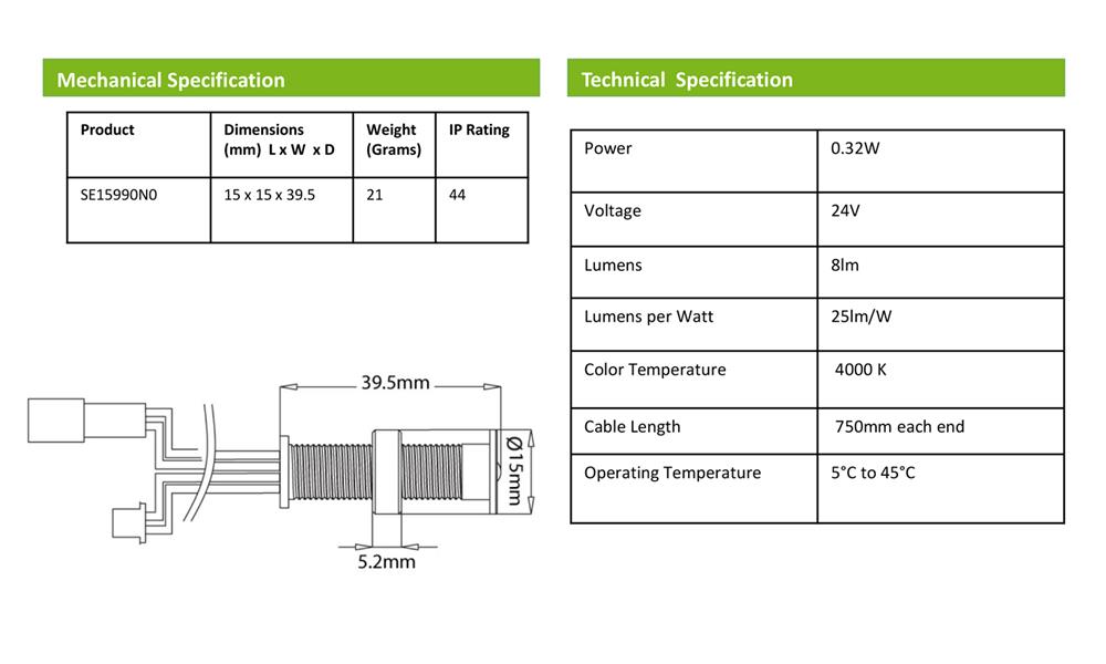• 2 x 75cm cable per fitting for daisy chain connection