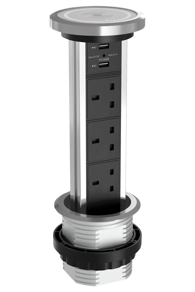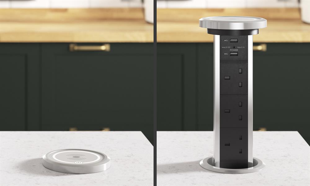 The SensioPod M, with its smooth, motorised mechanism, is the perfect addition to a kitchen island unit or worksurface to provide power and charging facilities.