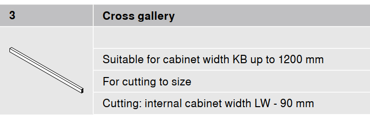 Blum Merivobox Cross gallery, to CW=1200 mm, length=1059 mm, for cutting to size
