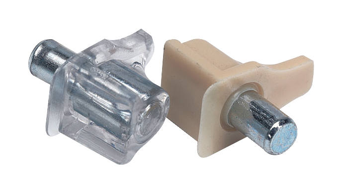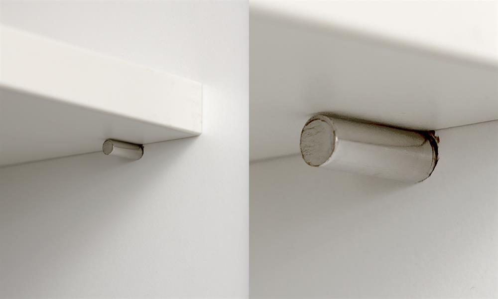 Discreet shelf plug with 80kg load capacity.