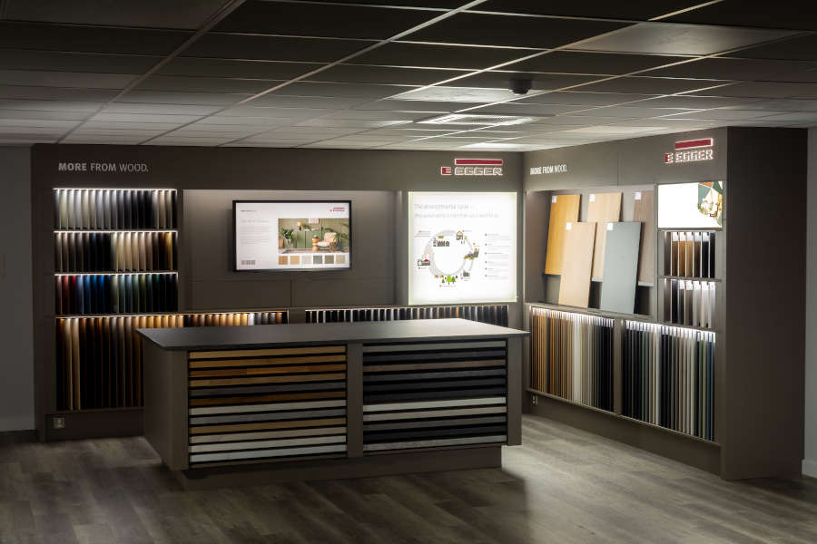 On display is the latest décors and worktops from EGGER, including: