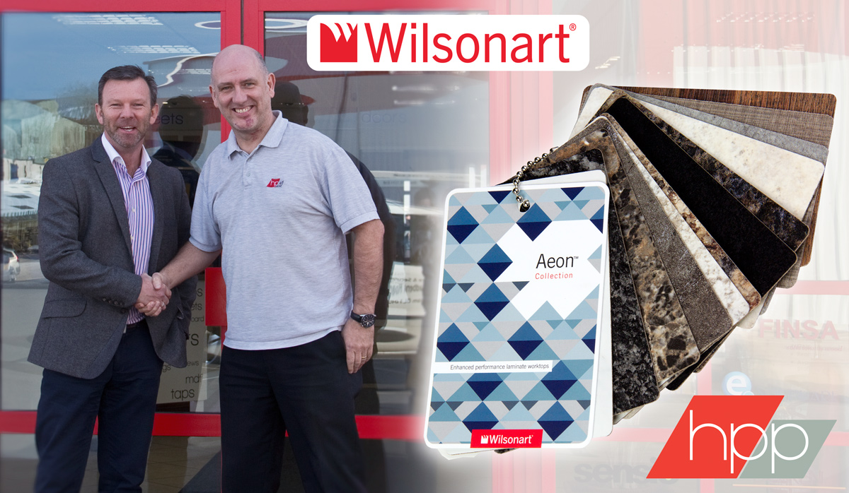 Nigel Machin, national distribution sales manager for Wilsonart UK (pictured with Purchasing Director Alan Bolton) explains, "HPP have been a partner of Wilsonart in the UK for many years with most of our ranges. That they recognise the advantages of such enhanced durability of Aeon™ for their customers is a great vote of confidence in the product."