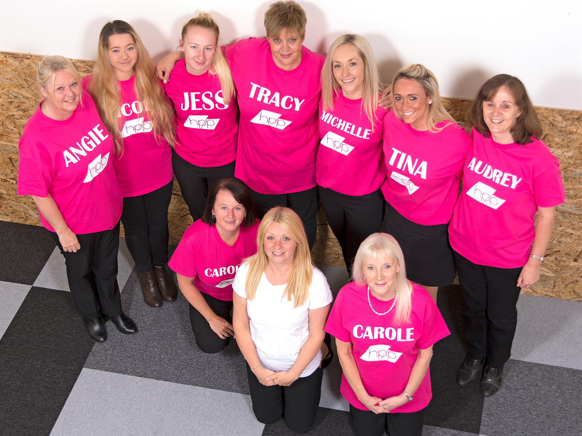 The 'Hills Angels' work in roles including sales, administration and accounts. They include Angela Hodgson, Nicole Aspinall, Jessica Smith, Tracy Lees, Michelle Topping, Tina Crossley, Audrey Crowther, Caroline Barker, Anna Hennessy and Carole Hamnett-Sadler.
