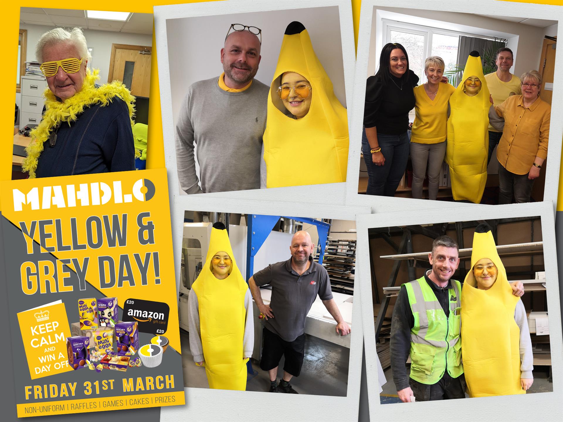 As part of our ongoing support to local youth service Mahdlo, we took the opportunity to join in with their recent Yellow & Grey Day, a nod to their corporate colours and a chance for some Friday Fundraising.