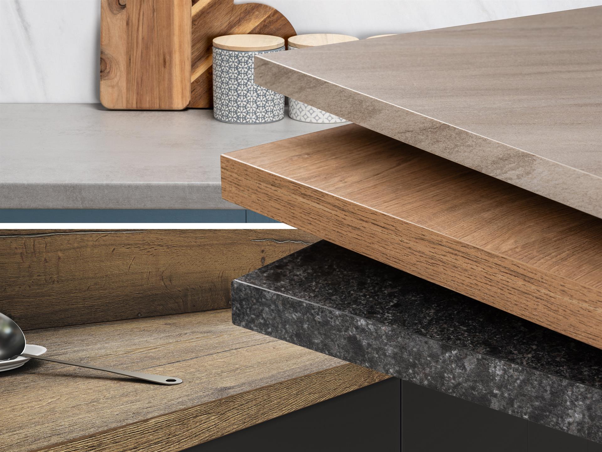 And 15 worktops feature matching 18mm Eurodekor faced chipboard readily available from UK stock, suitable for door frontals and carcasses.