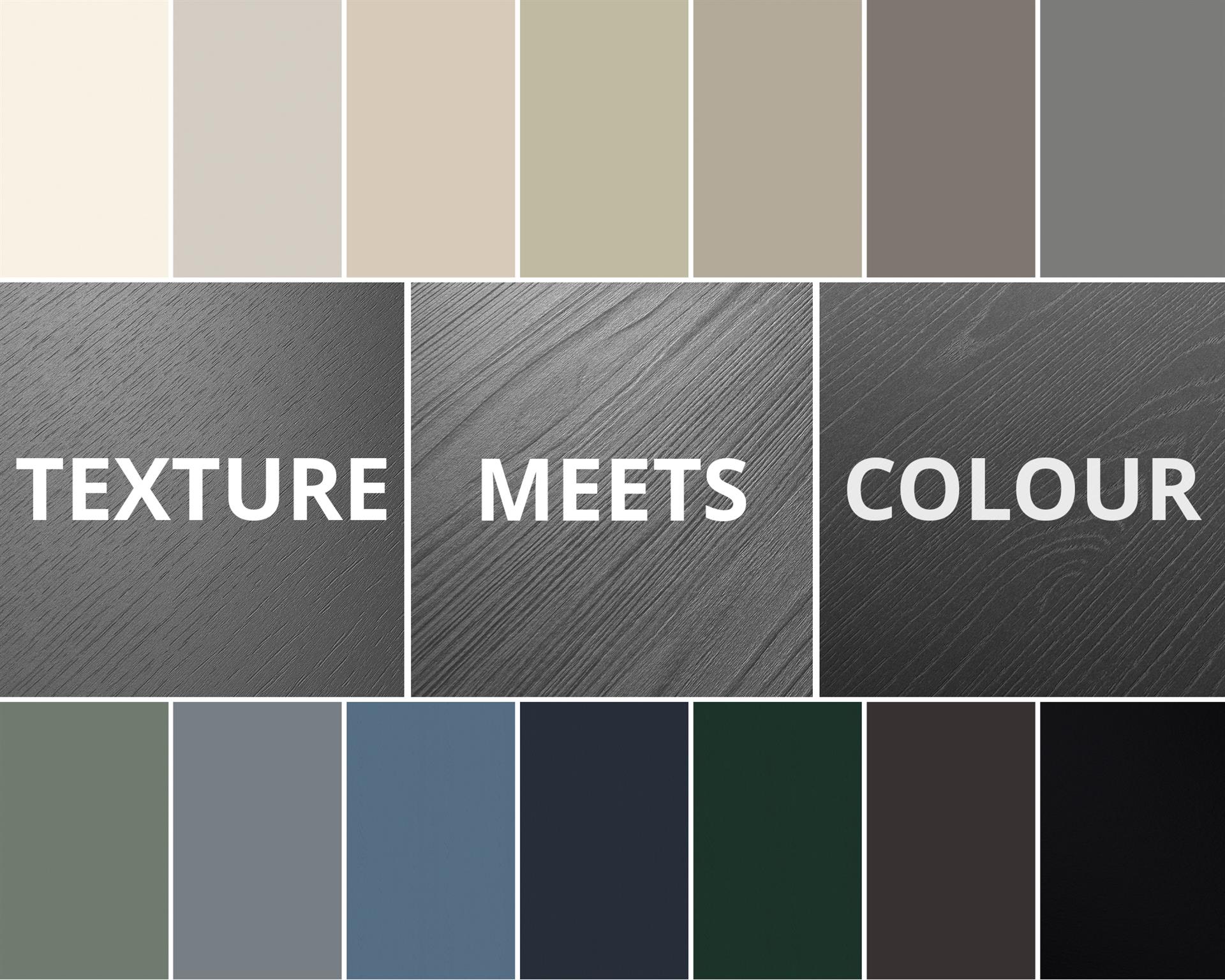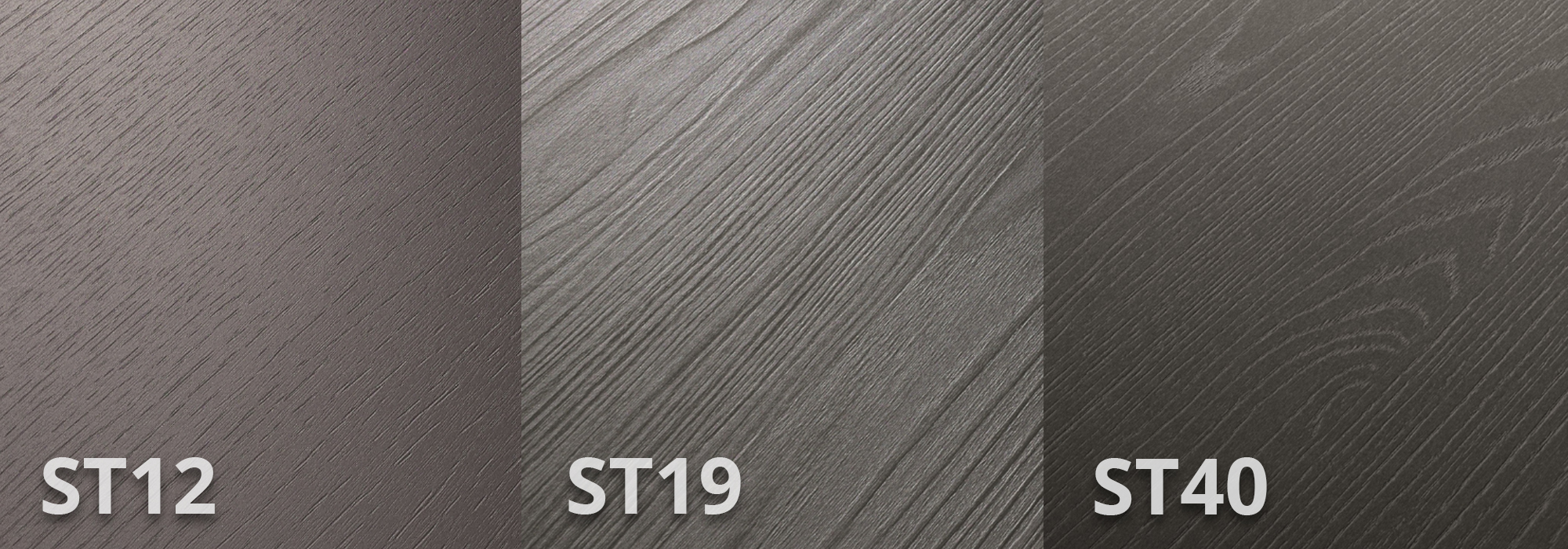 Each of the three textures display individual characteristics to offer alternative finishes across the range of colours. ST12 and ST19 both offer a subtle, contemporary finish, while the ST40 texture has a bold, more traditional look, with a deep matt structure that truly replicates a refined painted oak.
