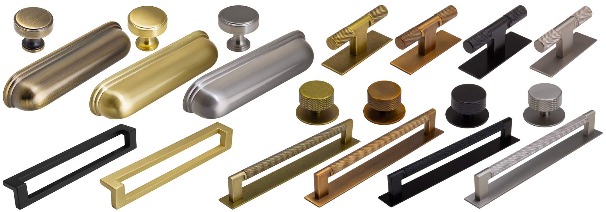There's a wide selection of handle styles and finishes in our Contemporary, Traditional and Essential ranges: from the most basic handle for large contract jobs to niche designs for that one customer who wants something a little different, there's something for every kitchen, bedroom, home office or living space. And there are enough finishes to complement any décor - from the polished chromes and brushed nickels to bronzes, coppers and matt finishes.