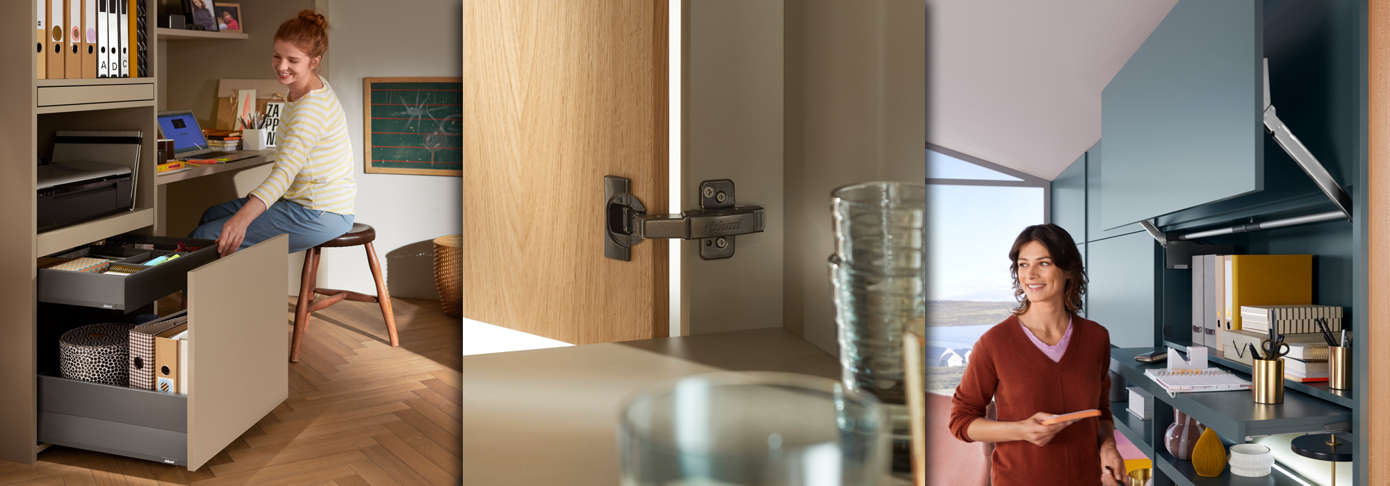 Our extensive range of Blum products includes pull-out systems for kitchens, bathrooms, living rooms, bedrooms and office spaces.