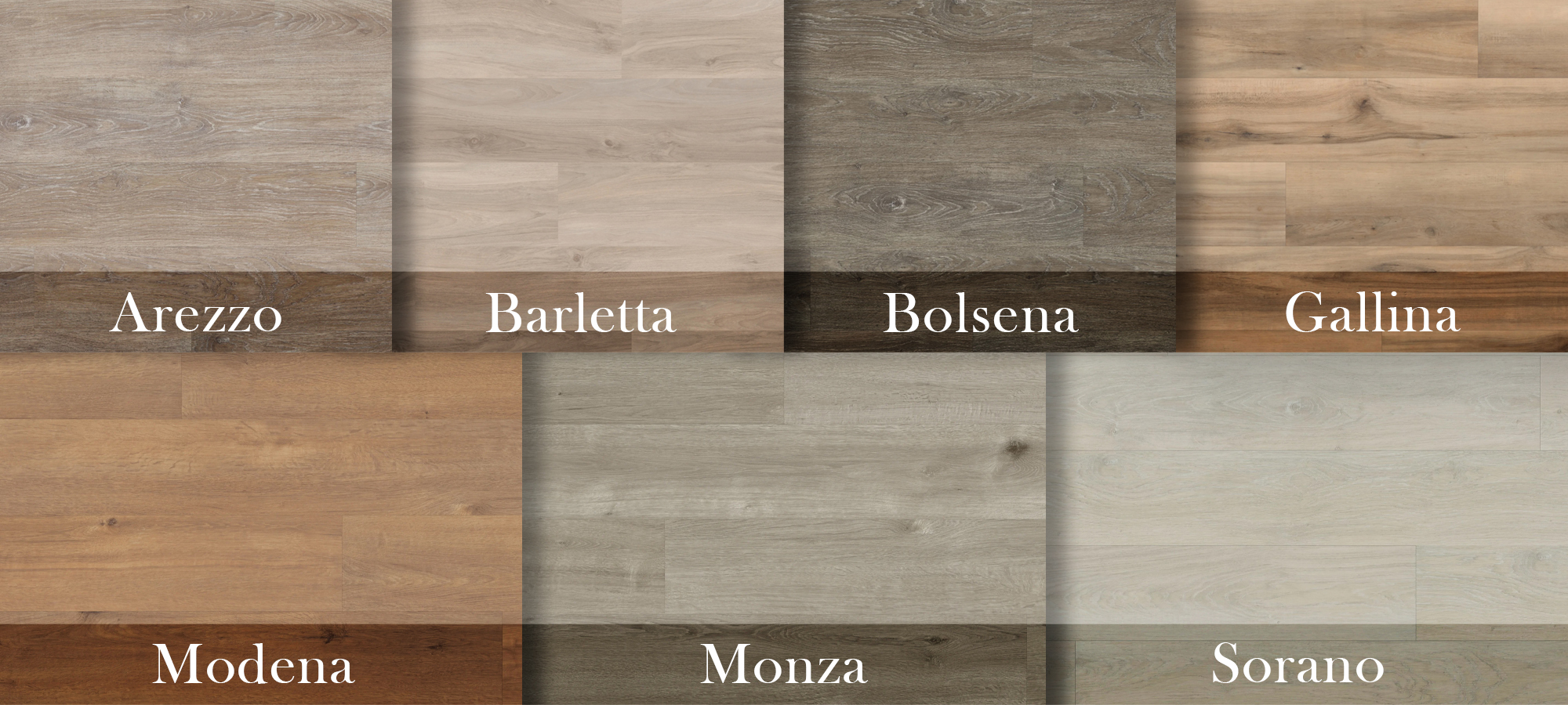 We're initially stocking a selection of 12 décors from Karndean's Palio Core range - seven wood planks (Arezzo, Barletta, Bolsena, Gallina, Modena, Monza and Sorano), three stone tiles (Carini, Cetona and Pienza) and two wood herringbone designs (Modena Herringbone and Monza Herringbone).