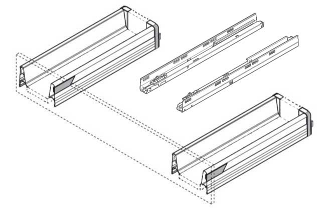 Blum Merivobox side stabilisation for 450-650mm runners L+R