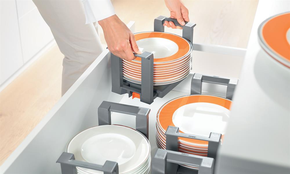 Storing plates in a full extension drawer? The Orga-Line plate holder makes this ergonomic solution possible. Up to 12 plates can be securely stored in each plate holder without tipping or sliding. The holders can adjust from 180-230mm and are easy to remove and transport.